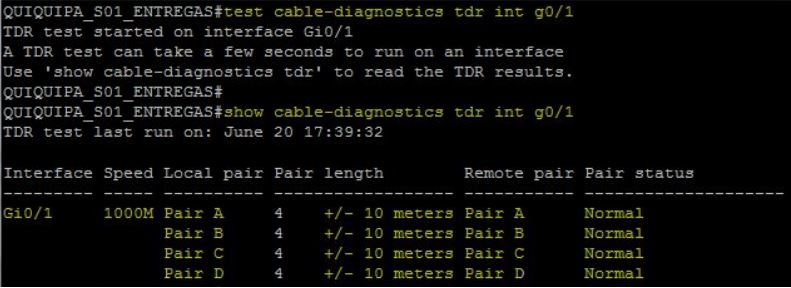 Sw despacho 01 show cable diagnostics tdr int g1 0 5 tdr test last run on.